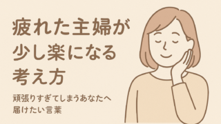女性の働き方・メンタルケア 疲れた主婦が少し楽になる考え方|頑張りすぎてしまうあなたへ届けたい言葉 毎日頑張りすぎて疲れてしまう主婦へ。家事・育児・仕事で心がいっぱいになる前に、少しだけ自分をゆるめる考え方を紹介します。「もう頑張りすぎなくていい」そんな優しい気持ちになれる記事です。 2025.12.12 女性の働き方・メンタルケア